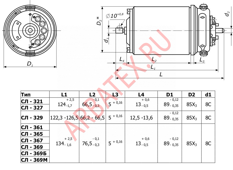 Электродвигатели СЛ-369М предназначены для работы от сети постоянного тока. У реверсных коллекторных электродвигателей СЛ-369М последовательного возбуждения направление вращения вала может быть как левым, так и правым.