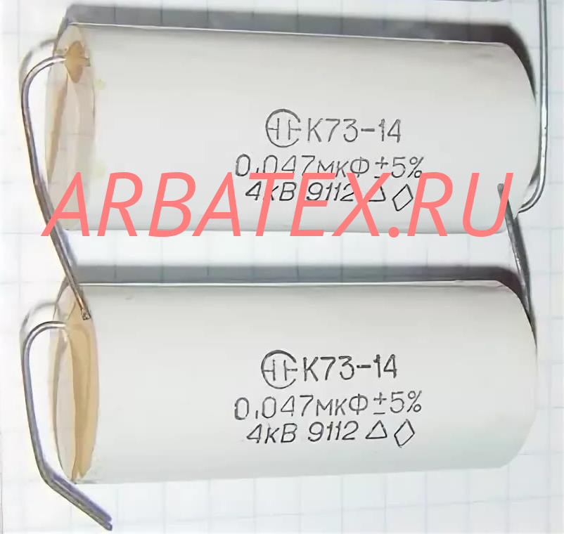 К73-14 4кВ 0,047мкф конденсатор постоянной ёмкости на основе металлизированной полиэтилентерефталатной плёнки. Предназначен для работы в цепях постоянного, переменного, пульсирующего токов и в импульсных режимах.