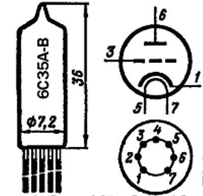 6С35А-В триод c высоким коэффициентом усиления предназначен для усиления напряжения низкой частоты и генерирования колебаний высокой частоты. По конструкции состоит из вакуумно-герметичной, жесткой оболочки, внутри которой отсутствует кислород.