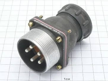 Цилиндрический низкочастотный соединитель 2РТТ36БПЭ5Г18В пылебрызгозащищенный, предназначен для работы в электрических цепях постоянного и переменного  токов частотой до 3 МГц при напряжении до 850 В (амплитудное значение).