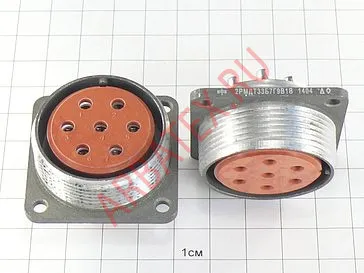 Также 2РМДТ33Б7Г9А1В относят в группу цилиндрических, низкочастотных разъемов которые выполнены из специального сплава алюминия АЛ-11. Изолятор на который посажены контакты разъема выполнен из пресс материала АГ-4.Покрытие контактов у данных разъемов - судя по последней букве "А" в маркировке - золото.