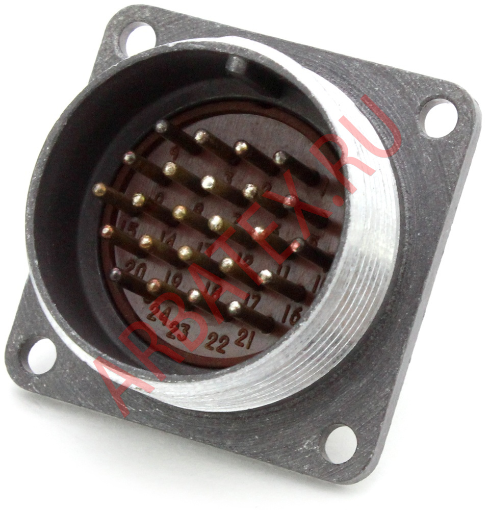 * 24: Разъем имеет 24 контакта, что позволяет передавать большое количество сигналов или обеспечивать подключение многожильного кабеля.