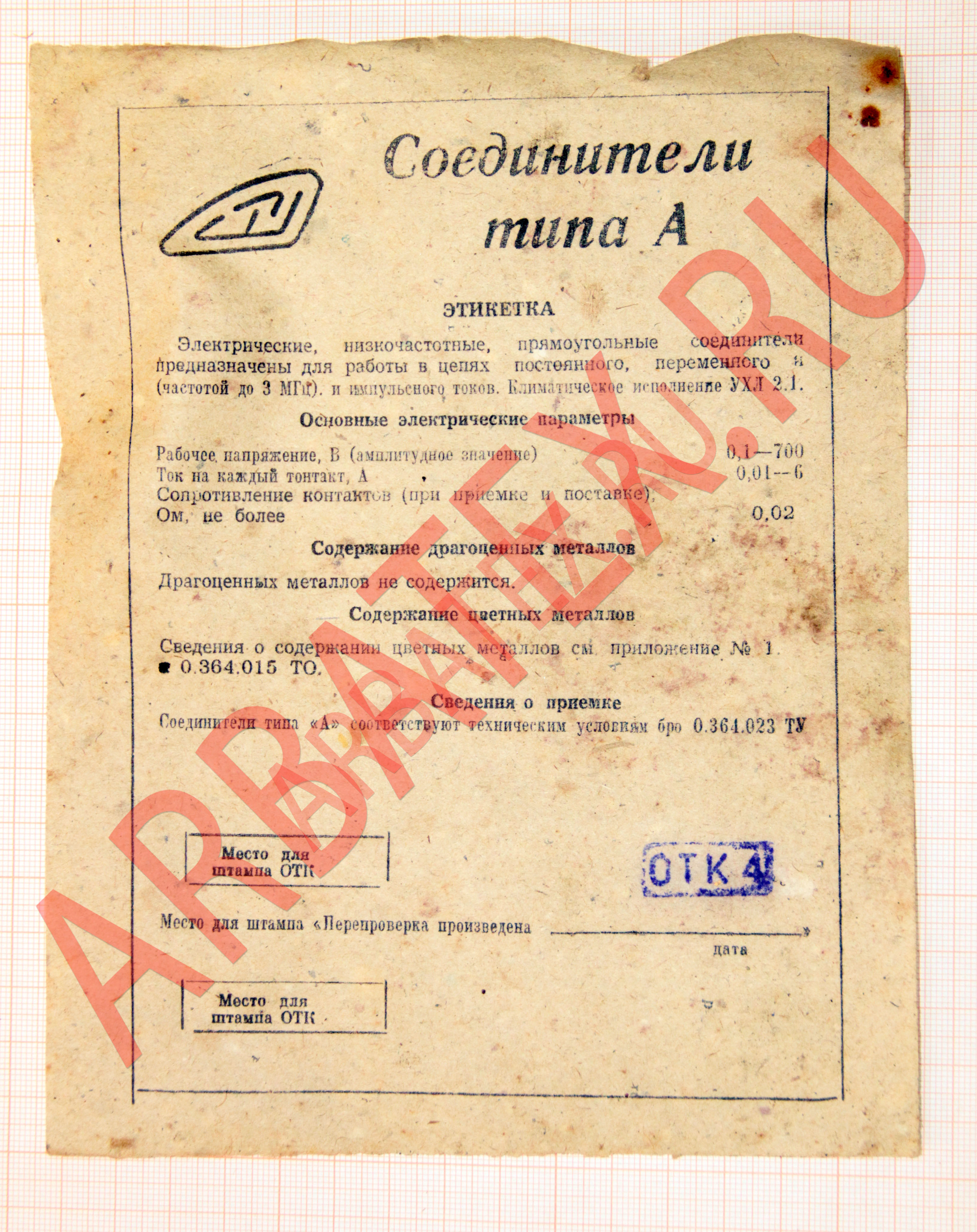 - Сопротивление контактов - 0.01 Ом - Сопротивление изоляции в нормальных климатических условиях - 10 ГОм - Максимальное рабочее напряжение (амплитудное значение) - 600 В - Рабочий ток на каждый контакт - 6 А