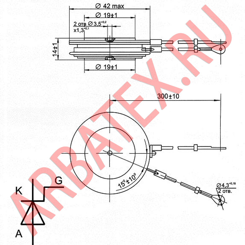 Масса тиристора не более 70 г.