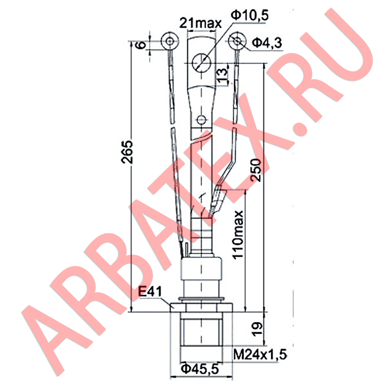 Максимально допустимый средний прямой ток в открытом состоянии - 250 А